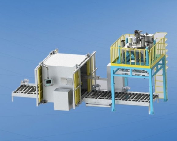 主要用于对超细粉料的大规模吨包自动按重量要求增重式螺旋下料,精度高,计量过程不需人员干预。特别适于细粉料、超细粉料。吨袋包装系统(成套》包括:超细粉负压吨袋包装机、复检系统、输送系统、吨包封口机。