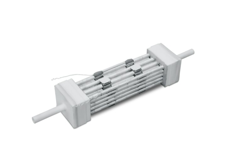 电堆由数个子堆堆叠而成,根据需要子堆间可串并联连接。索弗克以两子堆及五子堆堆叠,各子堆管间距6~7mm,以子堆串联形式组成50W、100W、250W、1000W、3000W的SOFC电堆。