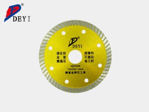 产品名称:Φ105烧结陶瓷波纹片(Φ105*20孔*1.3mm厚) 适用机型:角磨机,云石切割机 用于切割石材类型:陶瓷、瓷砖等。