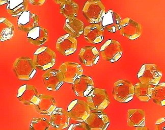 晶体完整、色泽透明、具有强度很高、热稳定性好、低磁性等特点。用于锯切,钻探及研磨工具。品质好于SCD80。