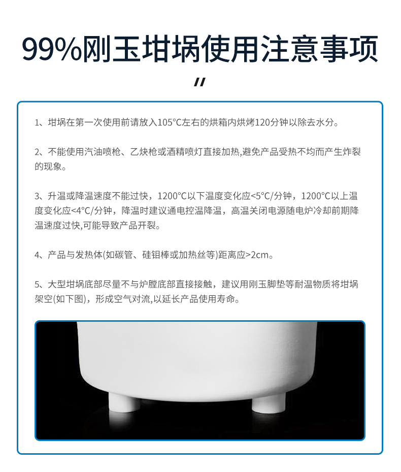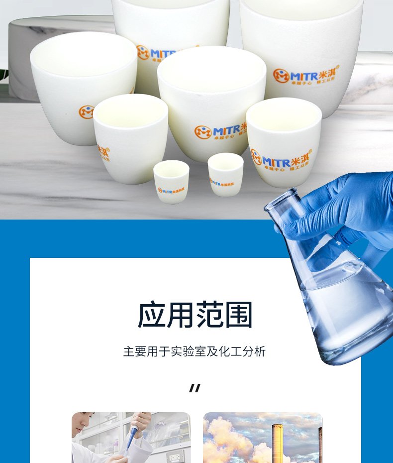 坩埚一般为瓷制品,规格有10、15、25、50mL等。种类有瓷坩埚、铁坩埚、氧化铝坩埚等。坩埚能耐高温,用来灼烧沉淀、熔化不与坩埚反应的盐类及使结晶水合物脱水等。坩埚用石灰、炭素及其他各种耐火土等为材料制成。坩埚可直接用火焰加热(用泥三角支撑),但需预热;实验中,坩埚必须用坩埚钳夹取,严禁用手接触热的坩埚,以免烫伤;为防止溅出固体或落入杂质,加热时应盖上盖,但当物质受热有大量气体或液体生成时,不可加盖。