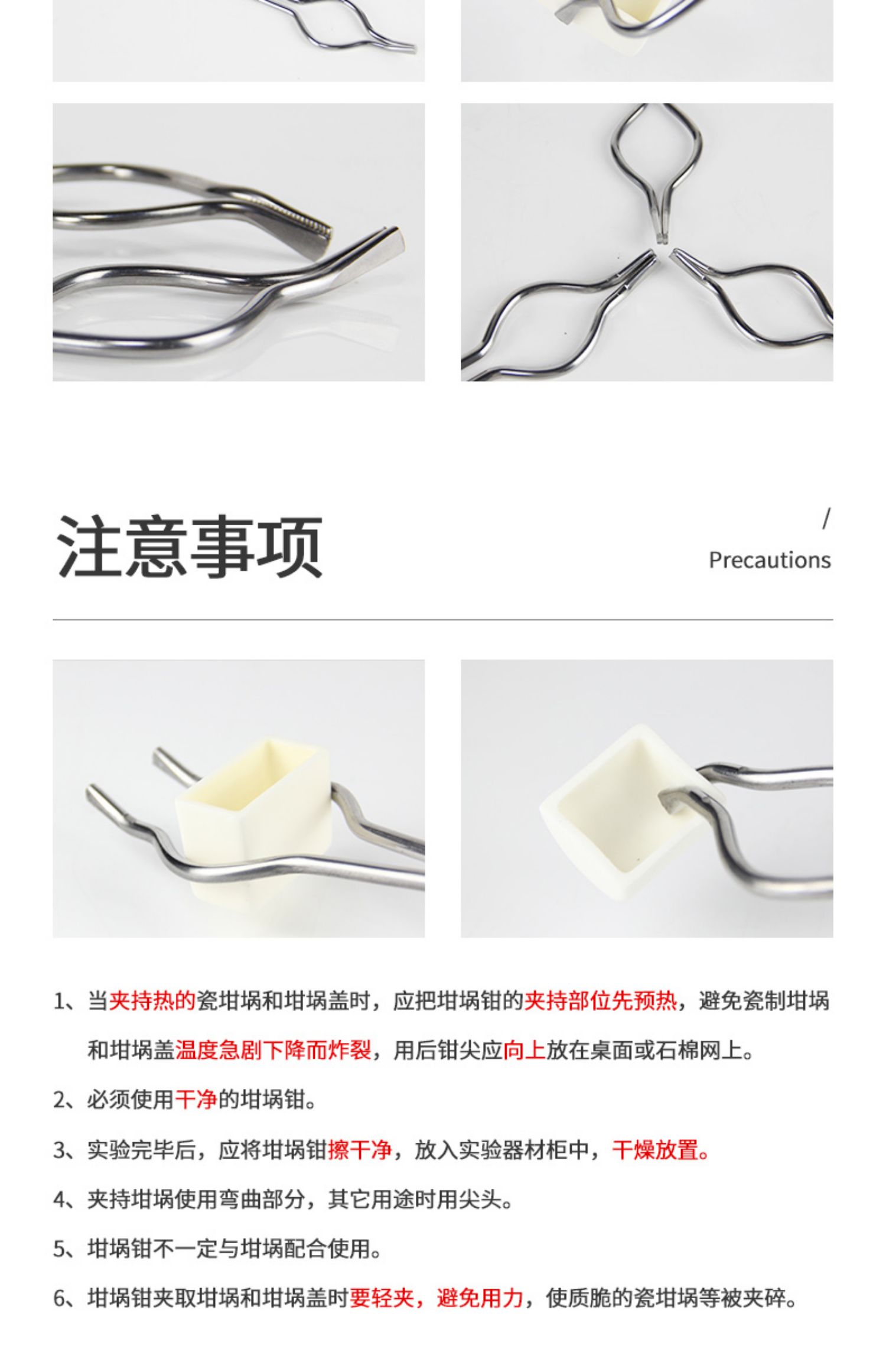 不锈钢坩埚钳的使用方法?