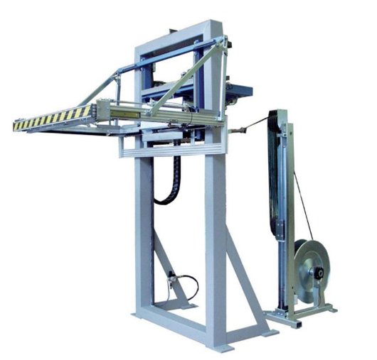 此机型是针对栈板打包设计,对装放在栈板上的散装堆积物体进行横向捆绑的自动捆包设备,操作简单,适合于在线无人化打包,减少人手,提高了工作效率。与DBA-880型穿剑式打包机配合使用,实现对货物的纵向和横向的无人化捆包。