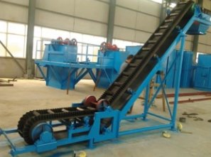 DJ型大倾角皮带输送机其结构是在平形橡胶运输带两侧粘上可自由伸缩的橡胶波形立式“裙边”,在裙边之间又粘有一定强度和弹性的横隔板组成匣形斗,使物料在斗中进行连续输送。挡边带式输送机可广泛用于煤炭、粮食、建材、化工、水电和冶金等部门,在环境温度为-19℃~+40℃范围内,输送堆积比重为0.5-2.5t/m3的各种散状物料。对于输送有特殊要求的物料,如高温、具有酸、碱性、油类物质或有机溶剂等成分的物料,需采用特殊的挡边输送带。