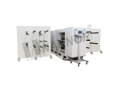 三支/四支放卷轴对碾压成型的产品及复合用基材进行放卷,通过高温辊碾压进而使电极层与基材进行热复合,复合完成后利用张力及纠偏控制将极片整齐地卷绕到在卷筒上。