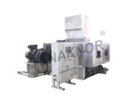来料为颗粒状产品,包括食品类、工业无机料、化妆品原料等。颗粒状来料经过超高速两支不同速比的轧辊的互相研磨,形成胶状产品。达到精细研磨效果,成品的胶状产品经过后续加工可以直接应用至多种行业