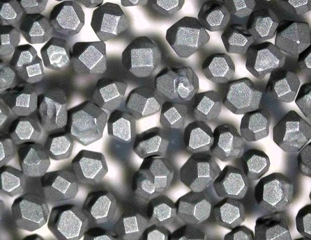 在金刚石上镀覆的碳化硅SiC已同金刚石行成键——键接合,成为一个整体,做冲击测试时不会掉壳,金刚石碎成几瓣,镀层还在上包裹,可见其牢固成度,这是因为Si在金刚石表面行成了SiC的缘故。粒度范围325/400——20/30,增重比例2%-3%。