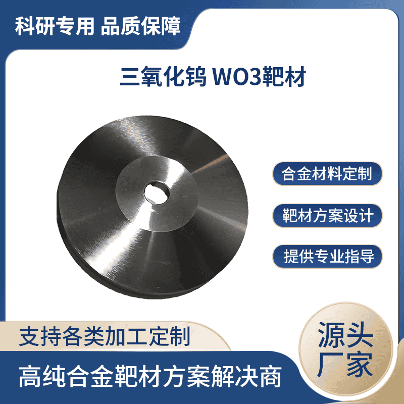 三氧化钨(WO3)靶材是一种用于物理气相沉积(PVD)或化学气相沉积(CVD)过程的材料,主要用于制备三氧化钨薄膜。三氧化钨薄膜在光学、电子器件、传感器等领域具有广泛的应用。