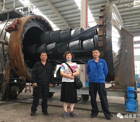 真空压力浸渍设备是将待浸工件置于密闭的耐压容器中抽真空,然后将沥青浸渍液输入其中,再施加一定的压力(气压)使沥青浸渍液浸透碳纤维的缝隙,达到浸渍的目的。