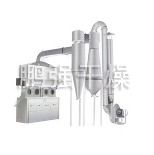 沸腾干燥,又称流化床,它是由空气过滤器、加热器、沸腾床主机,旋风分离器,布袋除尘器、高压离心风机、操作台组成,由于干燥物料的性质不同,配套除尘设备时,可按需要考虑,可同时选择旋风分离器、布袋除尘器,也可选择其中一种,一般来说比重较大的如冲剂及颗粒料干燥只需选择旋风分离器,比重较轻的小颗粒状和粉状物料需配套布袋除尘器,并备有气力送料装置及皮带输送机供选择。