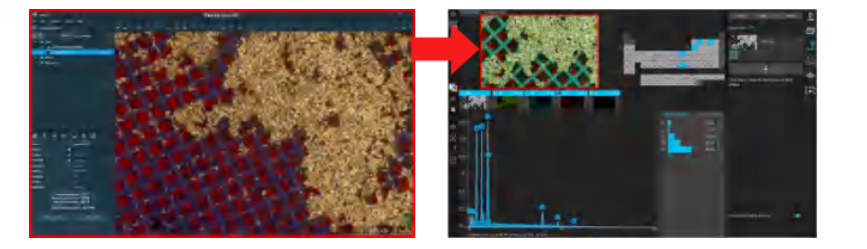 图3 . ⽀持离线数据处理: 将 EDS 数据导⼊ Phenom 台式扫描电镜的 UI 中