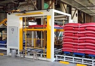 高位码垛机是自动化程度高、集成度好的高效。码垛机将设备码垛机包装袋按照预定方式编组,再将整层料袋层层码放托盘上,通常作包装线后续设备提高生产能力和转运能力。
