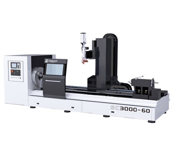 通过高功率激光器发射激光束,经光学镜组将圆形光斑转换成矩形光斑,