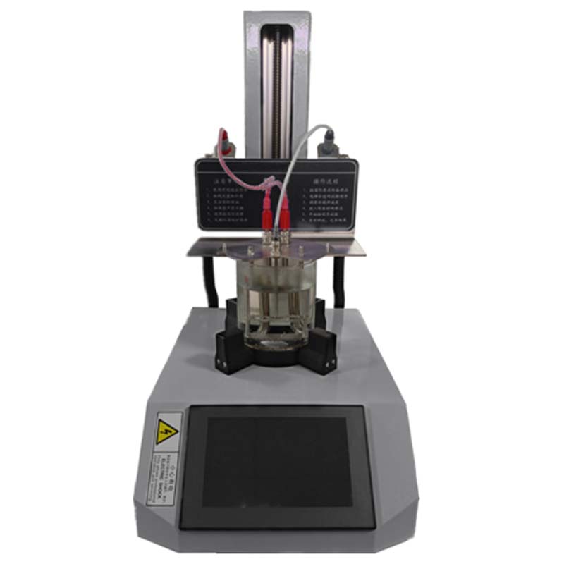 2、仪器通过加热管溶液介质和膏药加热,通过磁力搅拌器搅拌使烧杯内温度均匀,控制器采用插补算法控制输出,使介质按照1.0-1.5℃/分钟线性上升。试验环内的膏药在升温过程中开始慢慢软化,当达到软化温度点时,试样环内的膏药在钢球重力作用下呈水滴状缓慢下降,当两个试样环内的膏药下降接触到下挡板时的温度平均值即为膏药软化点温度。