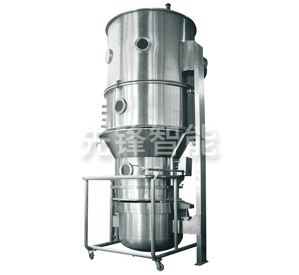 流化床分风板做成特殊环形片式结构,各片形成层叠形式,让气流从叶片的间隙通过,形成环流状的高速气流,从而使物料呈旋涡状似的规则运动,通过安装在侧壁的气动喷嘴将粘合剂或包衣液喷入规则流物料层,从而将粉体制成颗粒或得到连续均匀的膜衣。