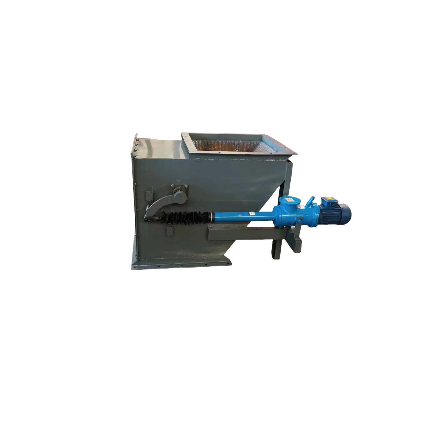 手动或执行机构推动摇杆,闸板边开启,物料下落,接料装置满载后,执行机构带动摇杆,使闸板,截断物料 。
