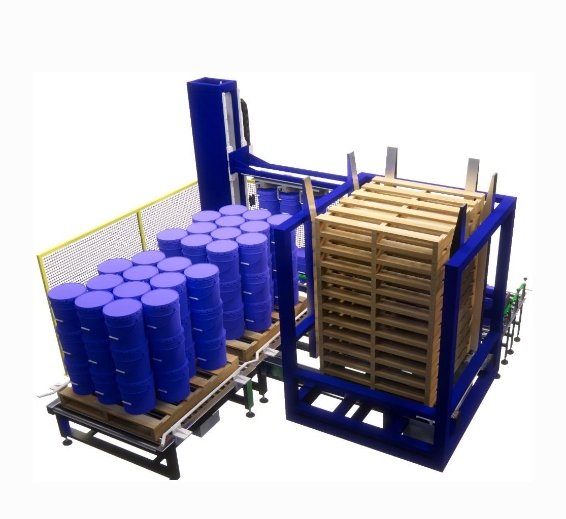 自动码垛将前道包装结束的桶装产品码放至托盘仓自动供给的托盘上。系统机身轻巧,占地面积小,功能强大,能满足不同环境下的使用,更加节省了地方和费用,减少了后道包装的劳动强度,节省人力和生产成本,稳定可靠。
