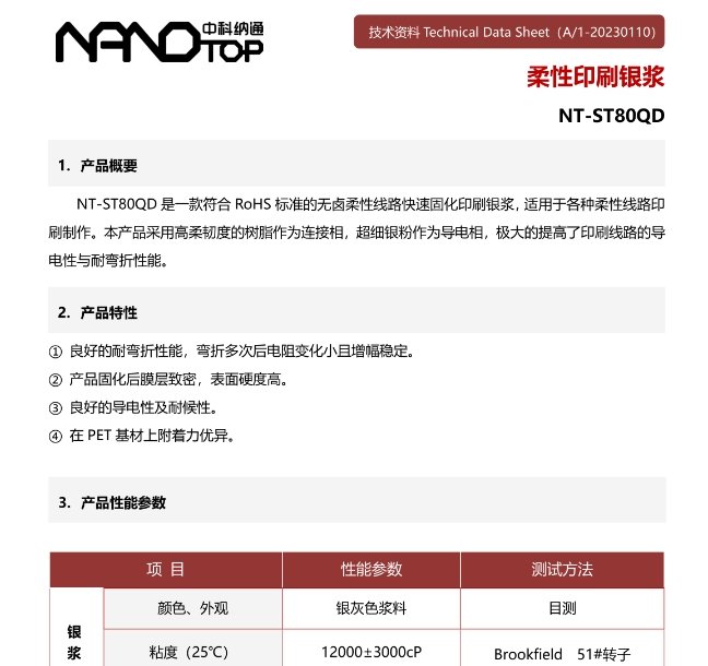 柔性抗氧化银浆NT-ST80QD的说明书有吗?