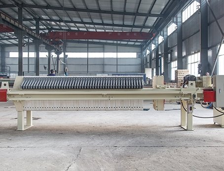 由于大型压滤机的单张滤板比较重,工人在开板卸料时不太方便、工作量也较大。本机采用液压自动拉板、磙子链传动、平移同步、磙子链拉机械手。