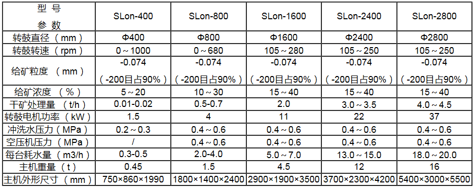 SLon离心选矿机具有分选指标好、回收微细金属矿下限粒度低、能耗小、不污染环境等特点。目前SLon离心选矿机已经应用于国内多个大中型企业,在生产过程中该设备运转稳定,自动化程度高,取得了良好的分选指标。与原有的强磁-反浮选工艺相比,强磁-离心选矿机这种新工艺在选别过程中不使用任何药剂,有利于环保。