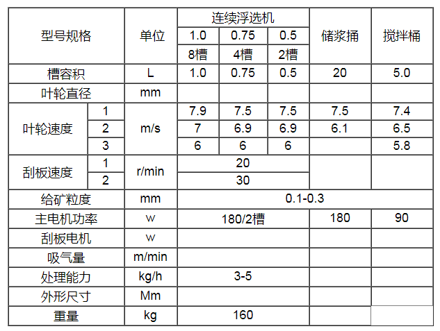 连续浮选机:1升8槽1台 0.75升4槽 1台 0.5升2槽1台