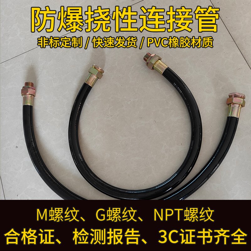 防爆软管通常由内管、外护套、编织层和接头等部分组成。内管一般采用不锈钢或其他合金材料,以确保其耐腐蚀性和耐高温性;外护套则可以是金属或合成材料,用于提供额外的保护和支撑。编织层的加入增强了软管的抗压和抗拉强度,使其能够承受更大的外部压力而不变形或破裂。接头部分则采用金属材质,并具备透气性设计,以确保在发生爆燃时能够迅速泄放压力并吸收热能。
