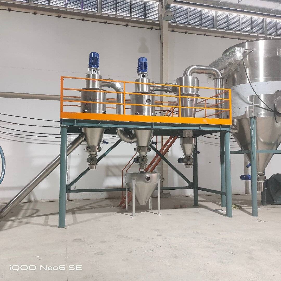 4. **收集**:粗颗粒从底部排出,细颗粒随气流进入收集系统(如旋风分离器或布袋除尘器)。主要结构
