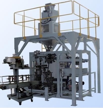 技术参数:包装材料:编织袋(涂膜)、牛皮纸袋、复合膜塑料袋(膜厚大于 0.18 毫米)包装尺寸:长 700-1100mm,宽 480-650mm 包装重量:25-50kg/袋,包装速度:3-8 包/分,封口方式:A. 编织袋: 折边/线缝,B. 牛皮纸袋:热封/线缝 C. 复合膜塑料袋:热封。