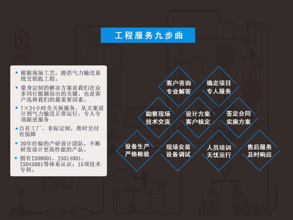 我们恒通粉体为客户定制了一条正压高强石膏粉气力输送系统,该项目参数水平距离20m、垂...