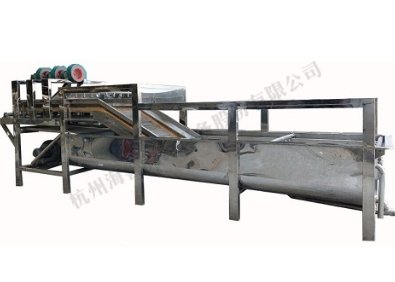 This machine is composed of frame, stainless steel conveyor belt, bubbling system, circulating water high pressure sprinkling system, clean water sprinkling system, electrical control system and so on. Using the vortex air pump to blister the water, the material can be fully rubbed effectively to achieve the cleaning effect. Water spray is used at the end of the end. The water is washed into the tank below the equipment, and the circulating pump is circulated to clean it.