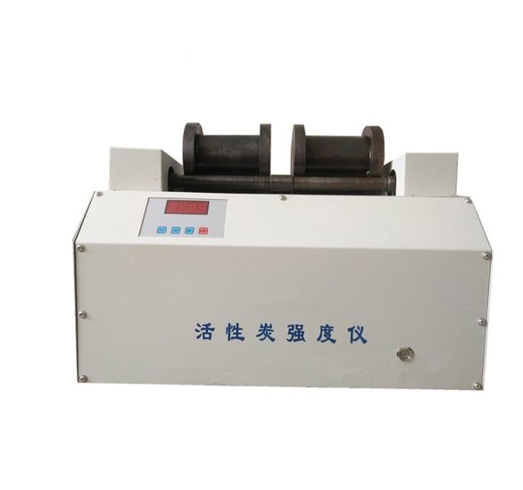 活性炭强度仪按照规定的试验条件,将活性炭试料置于装有钢球的滚筒中,开启强度测定仪,开始计时,通过滚筒的机械运动,试料被磨损,测定被 试料粒度的变化情况,用保留在试验筛上的试料质量占原试料的质量分数,可求出活性炭试样的强度。