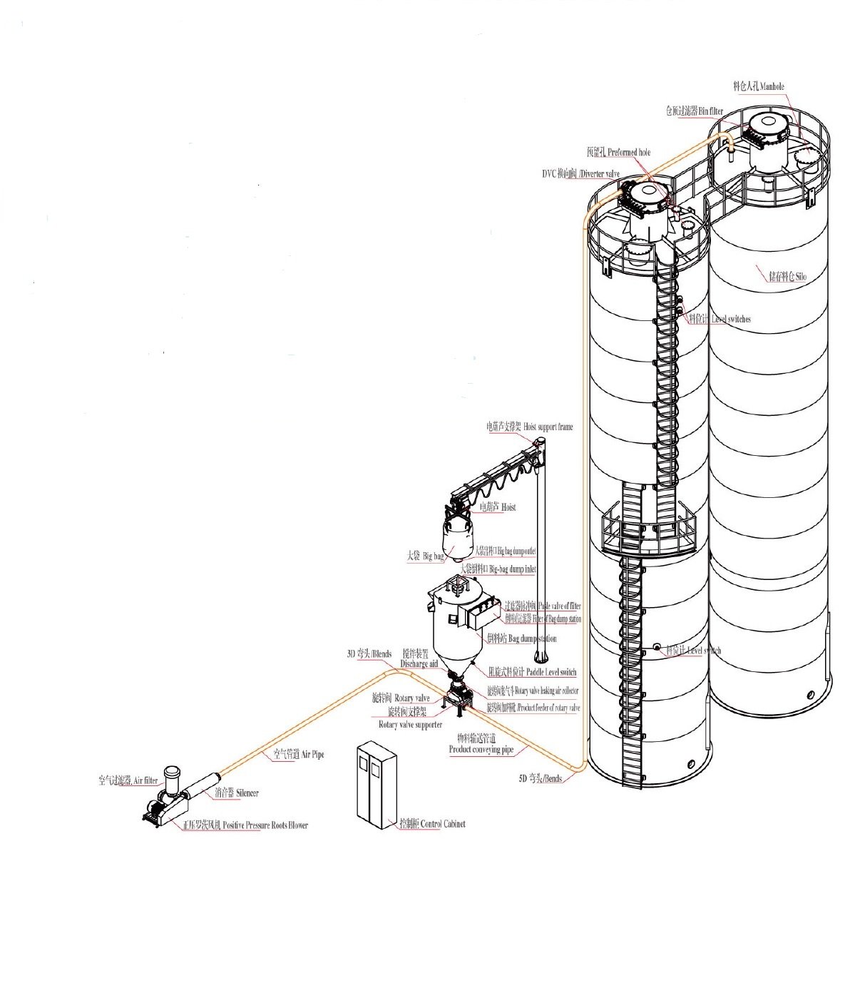 正压输送系统可以定义为采用吹气的方式沿限定通道输送粉状或颗粒状物料的方法。因输送管道内气体的压力为正值而得名。