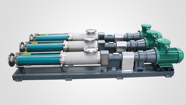 GNG系列螺旋泵也被称为单螺杆泵。螺杆泵的主要部件由螺杆轴(转子)和螺杆套管(定子)两部分组成。当转子在定子内部转动时,螺旋泵沿着泵的轴线螺旋转动而不改变形状或容量。这种工作形式将物料从泵入口输送到泵出口而不会较少物料总量。 因此GNG系列单螺杆泵是为离心机供浆的理想设备
