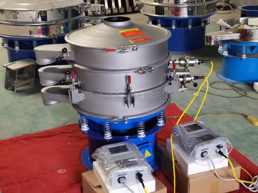 以双层超声波振动筛为例,它在常规超声波振动筛基础上添加一层筛框,超声波装置采用一拖二分支,使用一台超声波装置便可同时对两层 200 目以上的筛网工作,解决了普通超声波振动筛只能筛分一层 200 目以上物料的难题。并且相比使用两个超声波装置的超声波振动筛,价格便宜很多,占地面积不变,还减少了人工成本。
