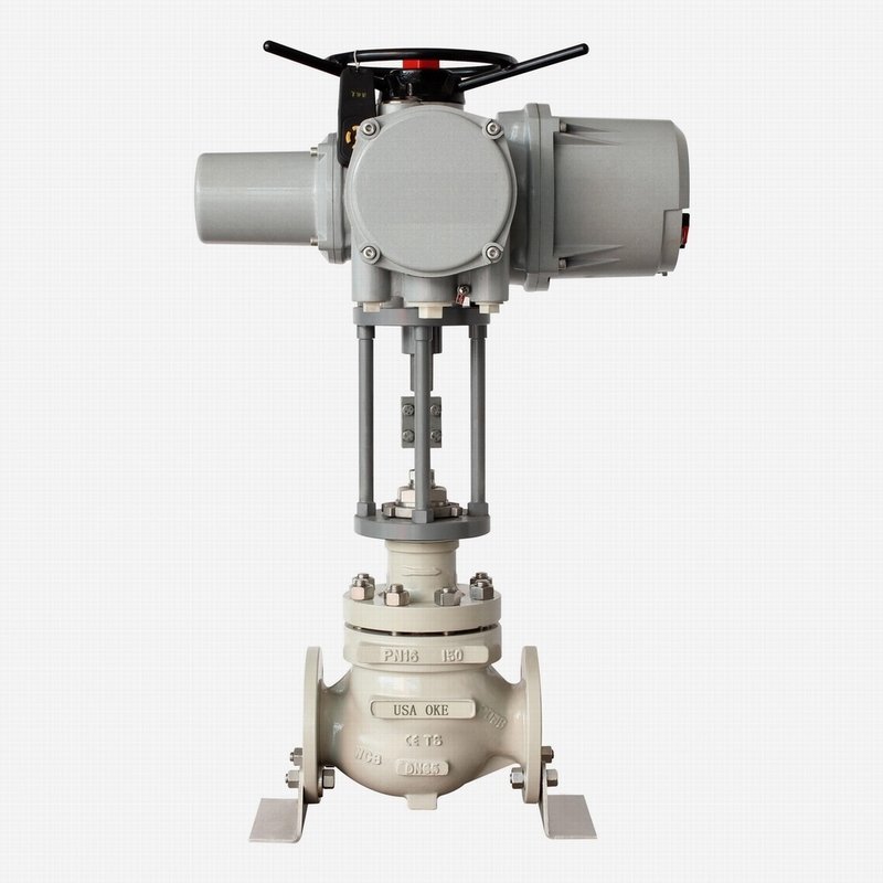 欧玛特电动波纹管密封调节阀,由OMAT系列(PSL系列)电子式电动执行器及低流阻调节阀阀体组成,阀芯采用上导向结构,阀结构紧凑,有呈S流线型的通道,使其压降损失小、流量大,可调范围广,流量特性精度高,符合IEC534-1-1976标准。上阀盖采用波纹管密封结构,适用于极毒、易燃易爆易挥发和稀有贵重金属介质的调节。另外该阀也可用在真空的场合.电动执行机构为一体化结构,内有伺服放大器,控制信号(4-20mADC或1-5VDC)及电源即可控制阀门开度,达到对压力、流量、液位、温度等工参数的调节。