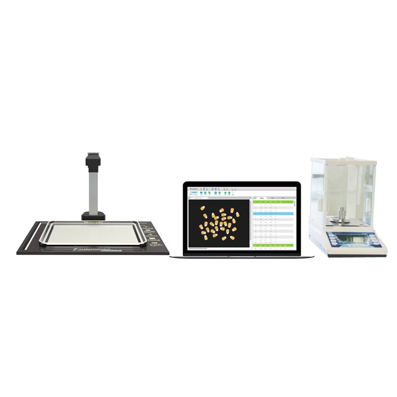 智能考种仪是一款自动分析种子各种表型性状的仪器,智能考种仪可以测量水稻、小麦、油菜、大豆等作物种子,采用高精度称重传感器及高分辨率摄像头拍摄被测种子图像,在获取种子重量的同时,计算出每粒种子详细结果:粒数、千粒重、百粒重、各籽粒的粒形的详细参数(长、宽、长宽比、面积、等效直径、周长等)。