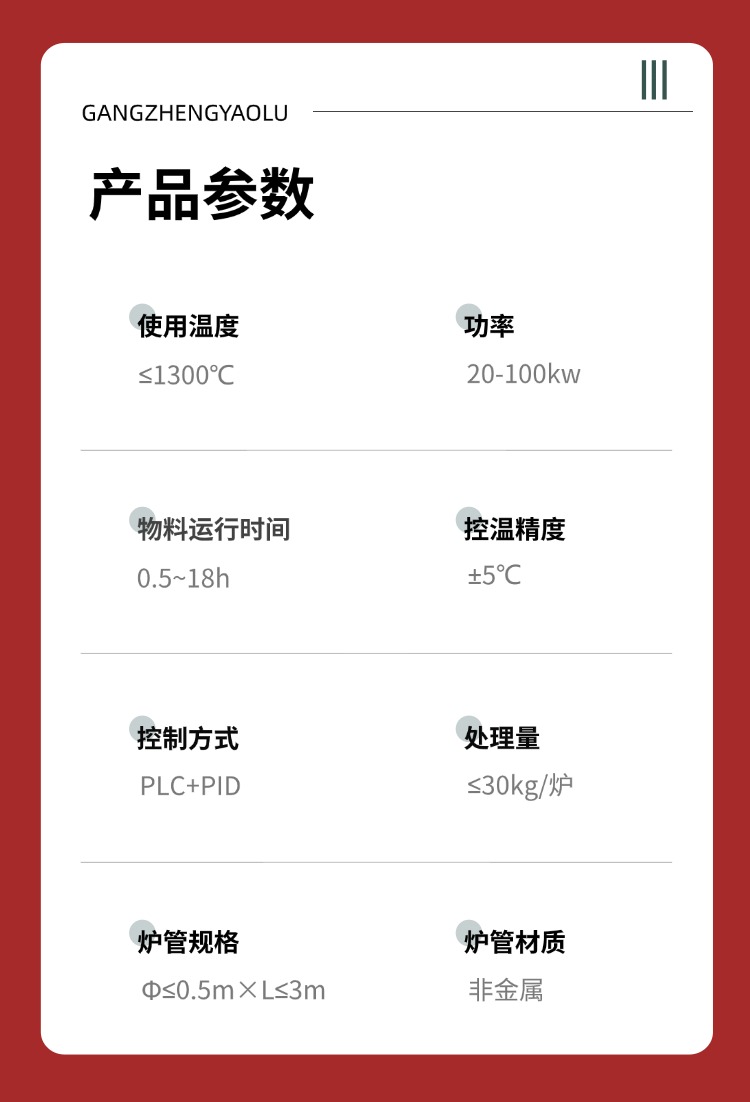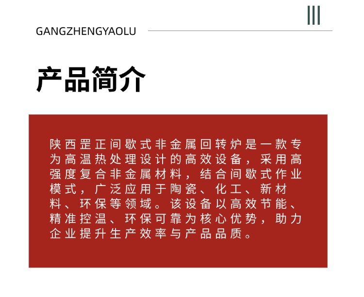 陕西罡正窑炉科技有限公司的GZ - 非金属间歇式回转炉是专为实验室研发、中试生产及小批量材料处理设计的高端热工设备,结合动态煅烧与精准控温技术,适用于新能源材料、稀土加工、催化剂制备等领域。以下从技术特点、应用场景、性能参数及服务支持等方面进行详细解析: