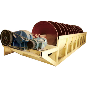 混合物料进入沉降水槽,经中空轴低速旋转搅拌,使轻细颗粒悬浮到.上面,流到溢流边溢出;粗重砂粒则沉降槽底,由螺旋输送到排料口排出。