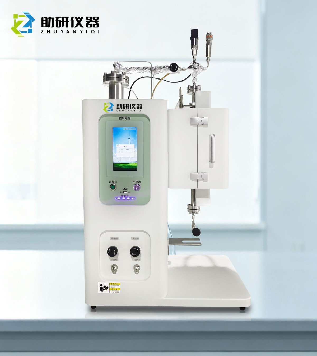 该套设备由7部分构成:1、透光立式炉;2、进气系统;3、金属反应器;4、石英反应器;5、鼓泡罐;6、气液分离罐;7、控制系统。