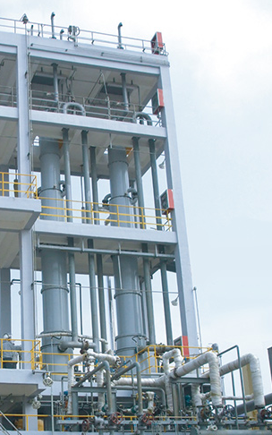 Cl2、H2合成、吸收、冷却,副产尾气再处理四个工艺程序合并在一台设备内完成。