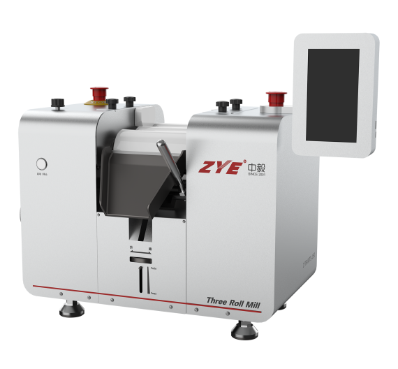 超强力剪切与挤压:后辊**转速 180r/min,中辊 120r/min,前辊 60r/min,转速差产生的剪切力较普通机型提升 25%,可快速打散纳米级团聚颗粒(如 0.5μm 银粉团聚体);150mm 直径辊筒增强挤压压力(可达 40MPa),确保颗粒细化至 0.3μm。