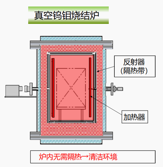 这是一个能提供清洁环境的热处理炉,内部不使用绝缘材料,由金属部件组成,可以在高真空下进行热处理并减少污染。加热器和反射器材料根据工作温度不同,选用钼、钨等材料,并且实现**温度 2500℃℃。炉压调节范围很广,从高真空到高压。