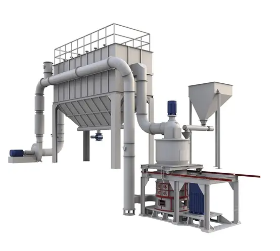 磨辊在离心力作用下压紧磨环并高速滚动,碾压物料成粉,特殊耐磨钢制造的磨辊和磨环可延长设备寿命。 | 可内置或外置,通过调节转速控制成品细度,满足不同领域需求。 | 电机通过减速机驱动主轴,带动磨辊和分级叶轮旋转,优质传动装置效率高、噪音低、维护方便。 | 含给料机、旋风收集器、除尘器和风机等,给料机均匀喂料,旋风收集器收集成品,除尘器确保环保,风机提供气流动力。 |