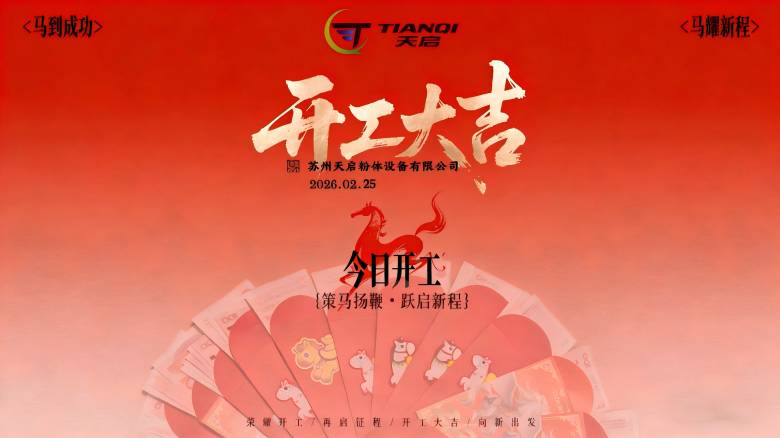 今日,新年启封,苏州天启粉体设备有限公司以昂扬姿态开启新程!感谢一路相伴的客户与团队,2026我们将继续凝心聚力、勇攀高峰,以创新引领发展,用专业铸就品质。新的一年,将继续为客户提供卓越的粉体设备解决