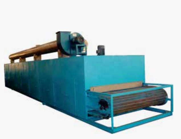 物料由加料器均匀地铺在网带上,网带一般采用12-60目不锈钢丝网,由传动装置拖动在干燥机内移动。干燥机由若干单元组成,每一单元热风独立循环,部分尾气由专门排湿风机排出,废气由调节阀控制,热气由下往上或由上往下穿过铺满物料的网带完成热量与质量传递的进程,带走物料水份。网带缓慢移动,运行速度可根据物料温度自由调节,干燥后的成品连续落入收料器中。上下循环单元根据用户需要可灵活配备,单元数量亦可根据需要选取。