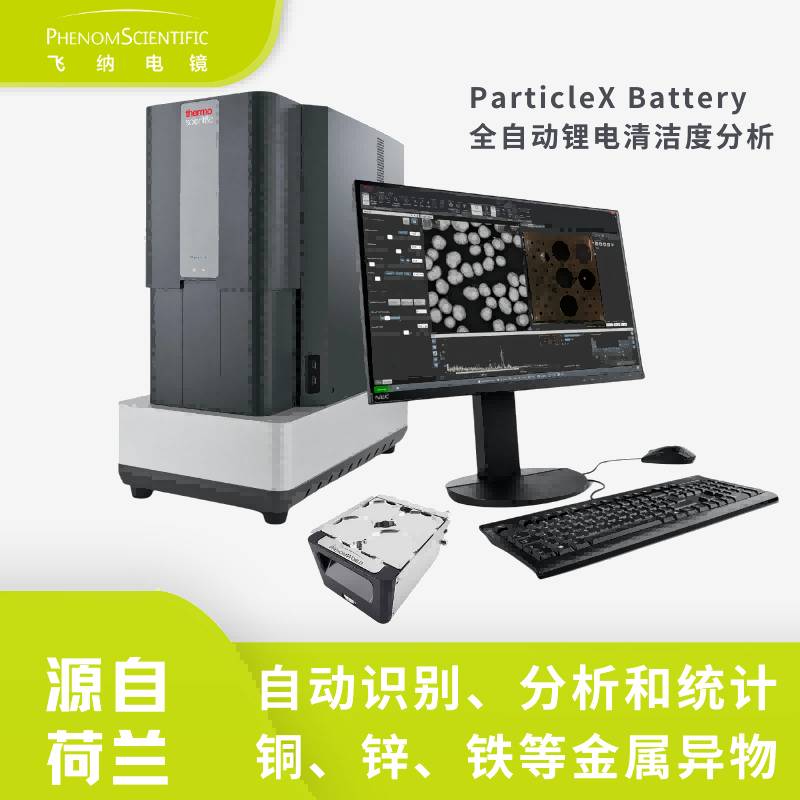 ParticleX Battery 锂电清洁度分析系统是一款面向锂离子电池材料与电池制造环节的全自动清洁度分析设备。系统基于扫描电镜(SEM)与能谱分析(EDS)技术,可对锂电池正极与负极材料中的铁类及多种金属杂质颗粒进行快速识别、成分分析与分类统计,帮助企业精准确认磁性杂质来源,从而持续优化生产工艺与质量控制流程。