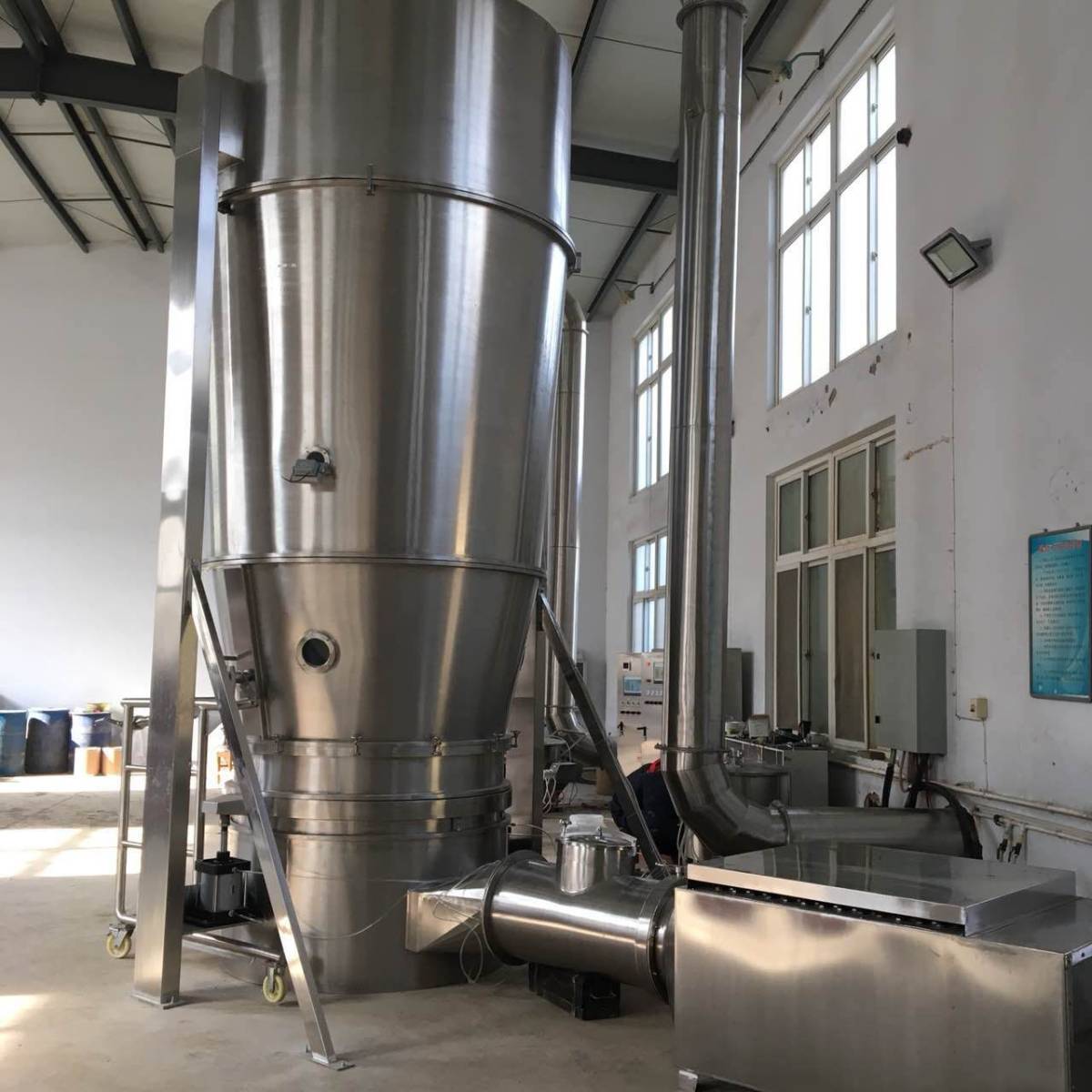 一步制粒机又称流化床制粒干燥机,是将混合、制粒、干燥三个工序集成于一体的多功能设备。以下是其详细介绍:工作原理:设备通过底部的气流分布板将洁净的热空气均匀送入流化床,物料在气流的作用下呈现 “沸腾”