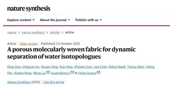 重水(D₂O)是核能、医疗等领域的关键战略资源,但其自然丰度极低,仅约为0.015%。由于H₂O与D₂O在尺寸和化学性质上高度相似,传统分离方法如蒸馏、电解等存在能耗高、效率低的问题,因此开发高效、节