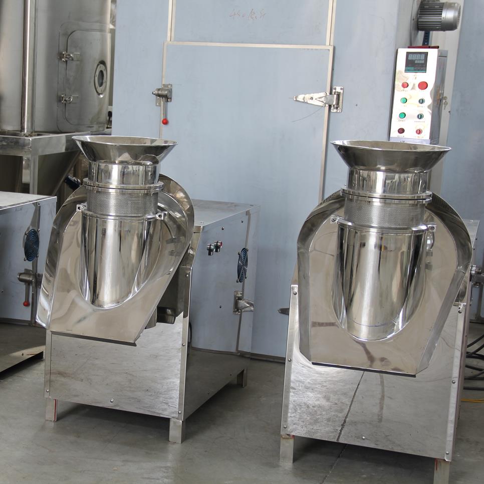 本机是通过一组旋转碾刀,将前道工序制成的湿材注入环碾刀的不锈钢筛筒筛孔中,从而制成圆柱状的湿颗粒,供下道工序抛丸使用。本设备可通过更换不锈钢筛简来取得不同大小的颗粒。