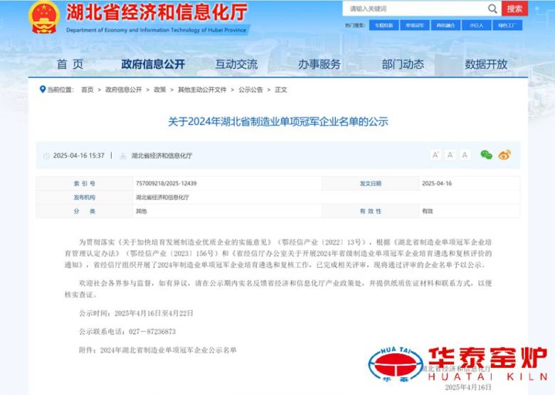 近日,湖北省经济和信息化厅发布《关于2023年度湖北省制造业单项冠军企业名单的公示》显示:为贯彻落实《关于加快培育发展制造业优质企业的实施意见》(鄂经信产业〔2022〕13号),根据《湖北省制造业单项